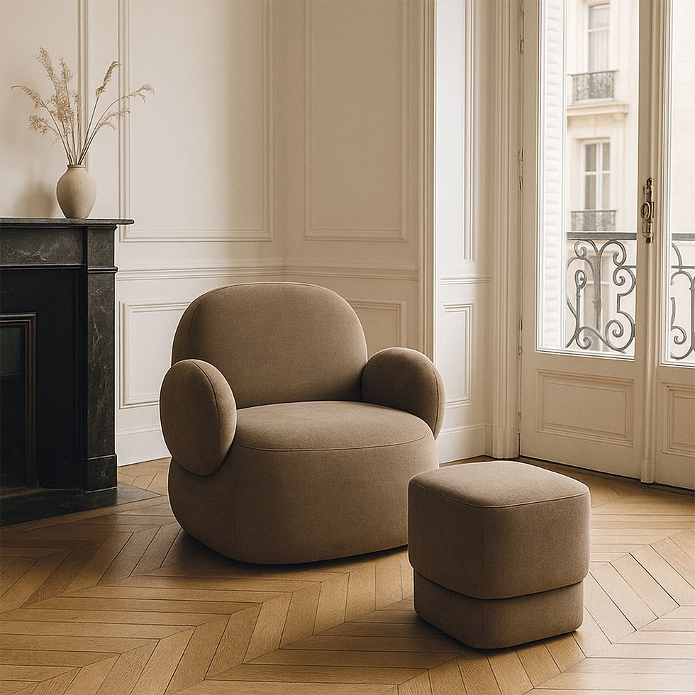 Chaise lounge (chaise lounge bois et lin) avec coussin beige
