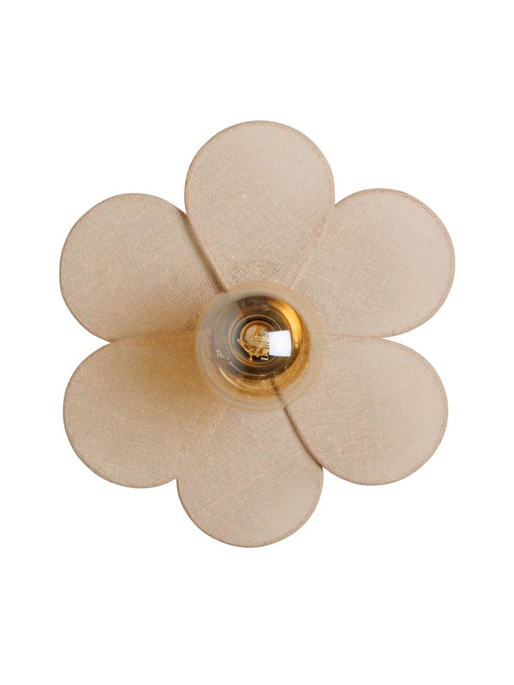 Ajoutez une touche de douceur naturelle à votre intérieur avec cette applique murale en lin. Son design en forme de fleur, avec six pétales élégants entourant une ampoule centrale, diffuse une lumière chaleureuse tout en apportant une esthétique organique et moderne.