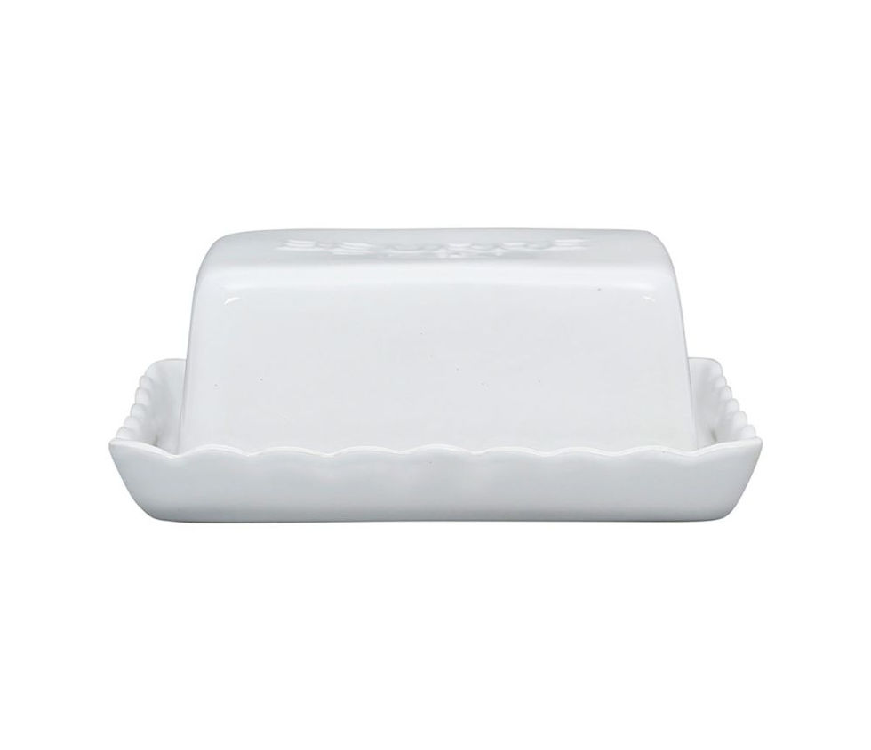 Apportez une touche d'élégance rustique à votre table avec ce beurrier en grès blanc. Orné de l'inscription 'BEURRE' sur son couvercle, il combine praticité et charme intemporel pour conserver votre beurre avec style.