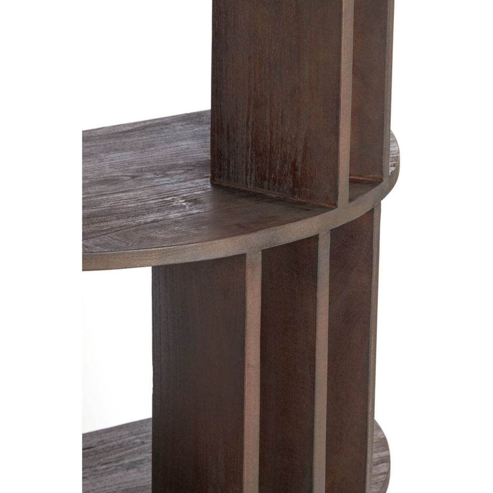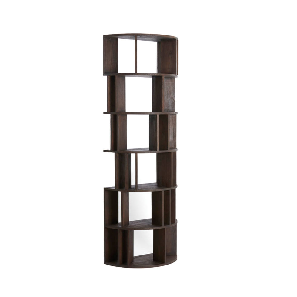 Ce cabinet en bois exotique de mindi foncé présente une allure élégante et moderne. Avec sa structure cylindrique et ses étagères asymétriques ouvertes, il offre des espaces de rangement pratiques tout en apportant une touche sophistiquée et naturelle à votre intérieur. Idéal pour sublimer une pièce avec un style chaleureux et raffiné.