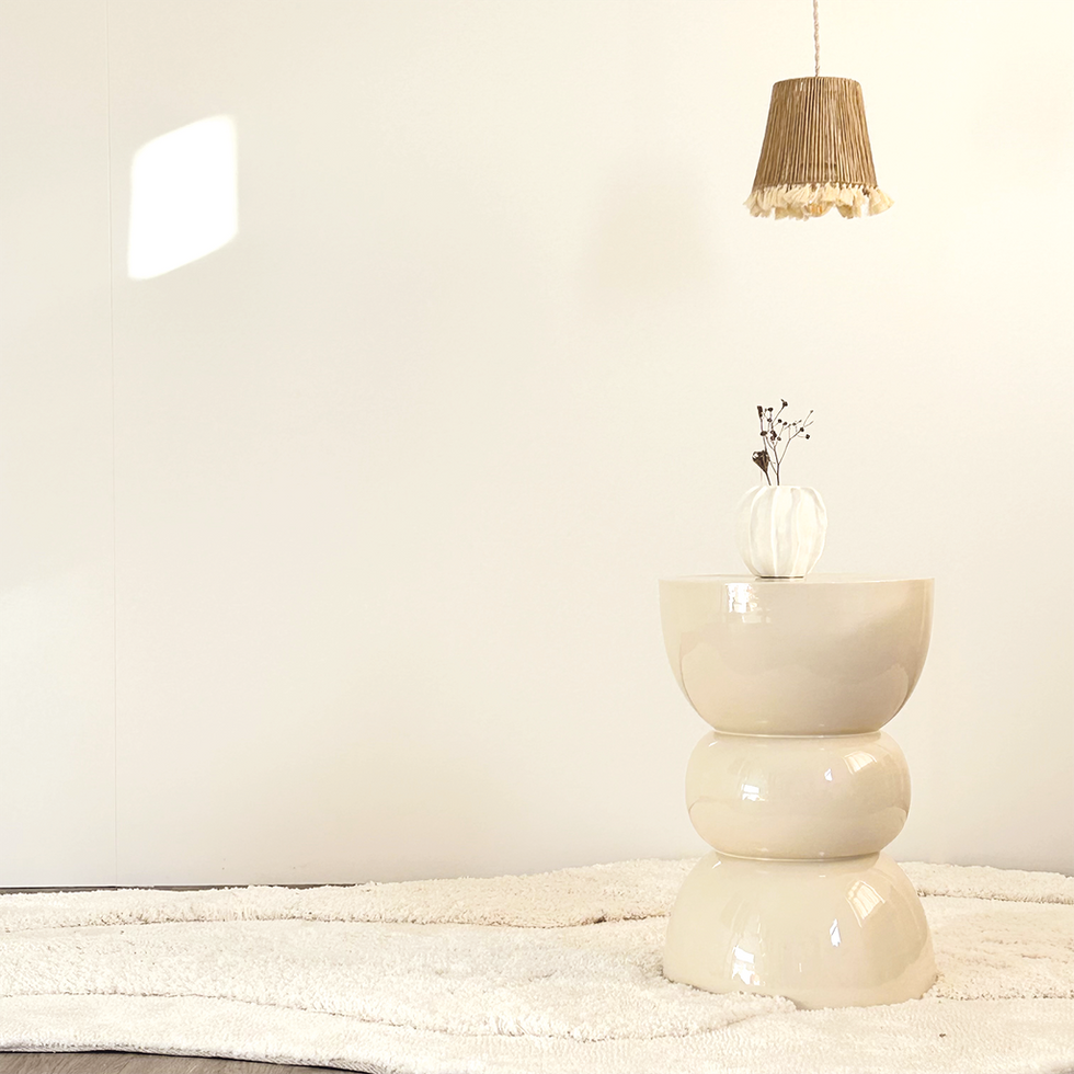 Ce bout de canapé en métal incarne l'élégance contemporaine avec sa finition beige brillant et ses courbes audacieuses. Les trois sections arrondies empilées créent un design moderne qui capte l'attention. Parfait pour sublimer un salon, ce meuble allie style et fonctionnalité avec finesse.