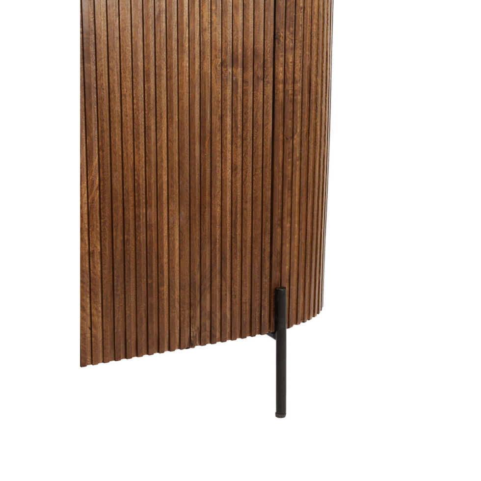 Ce cabinet en bois de manguier séduit par son design raffiné et ses lignes sculptées verticales qui lui confèrent une touche artistique. Ses deux portes discrètes, soulignées de poignées noires modernes, cachent un espace de rangement généreux et fonctionnel. Monté sur des pieds fins en métal noir, il mêle élégance contemporaine et chaleur naturelle du bois. Un choix idéal pour sublimer un intérieur avec caractère et sophistication.