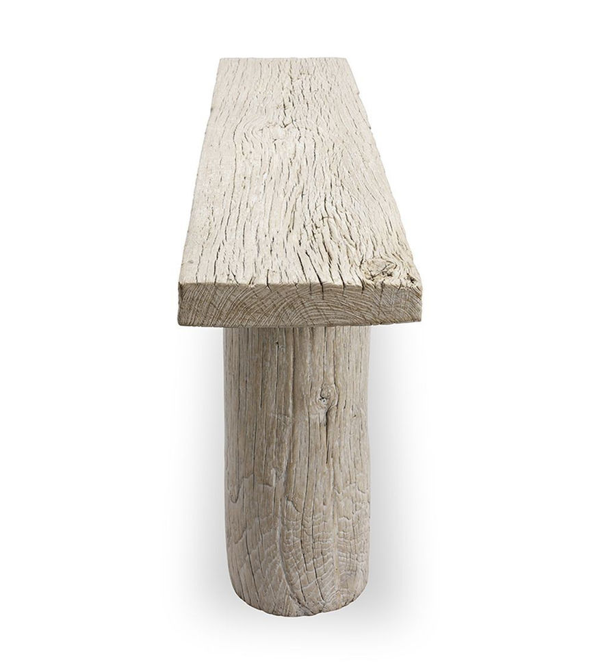 Ajoutez une touche d’élégance authentique à votre intérieur avec cette console en bois d’orme recyclé. Son design épuré, soutenu par deux pieds cylindriques robustes, met en valeur le caractère unique du bois récupéré.