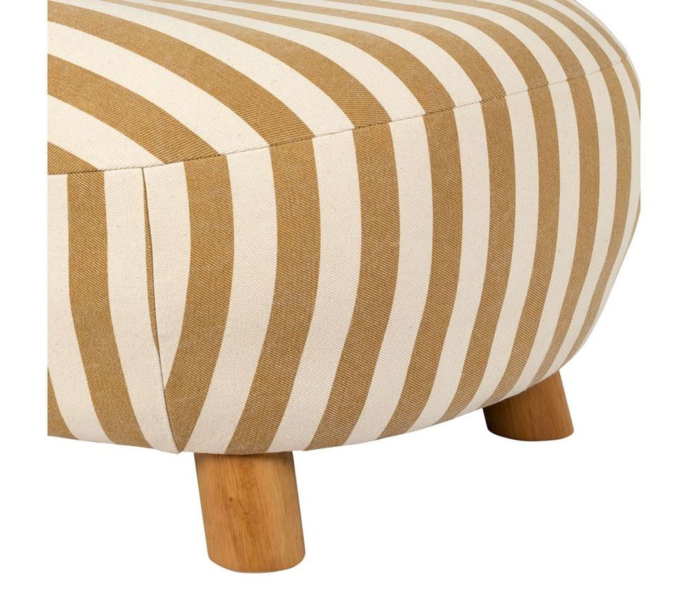 Apportez du style et du confort à votre intérieur avec ce fauteuil en coton à rayures camel et écru. Sa forme arrondie et ses pieds en bois allient élégance et modernité pour un espace chaleureux et accueillant.