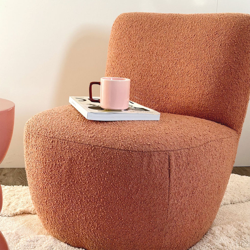 Ce fauteuil en bouclettes arbore un design moderne et raffiné, avec des courbes harmonieuses pour le dossier et l'assise. Son tissu bouclé, doux et de couleur rouille, apporte une touche cosy et élégante à tout intérieur contemporain.