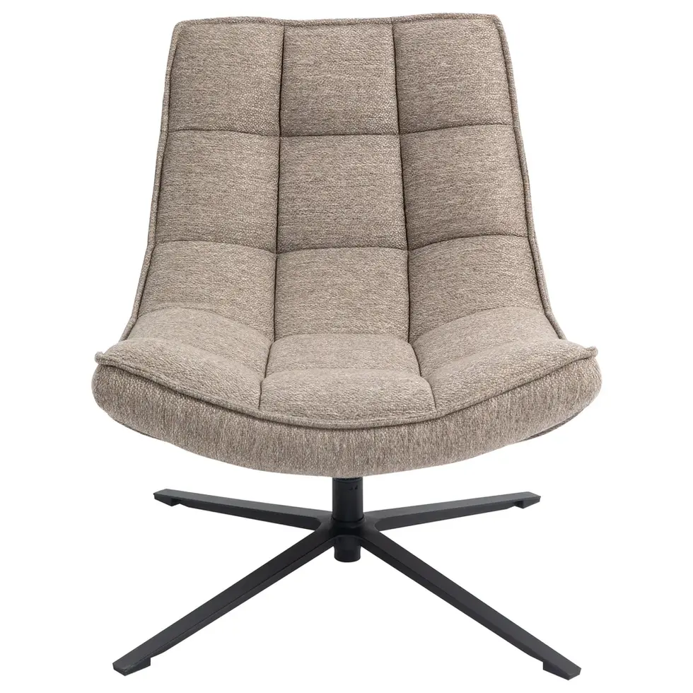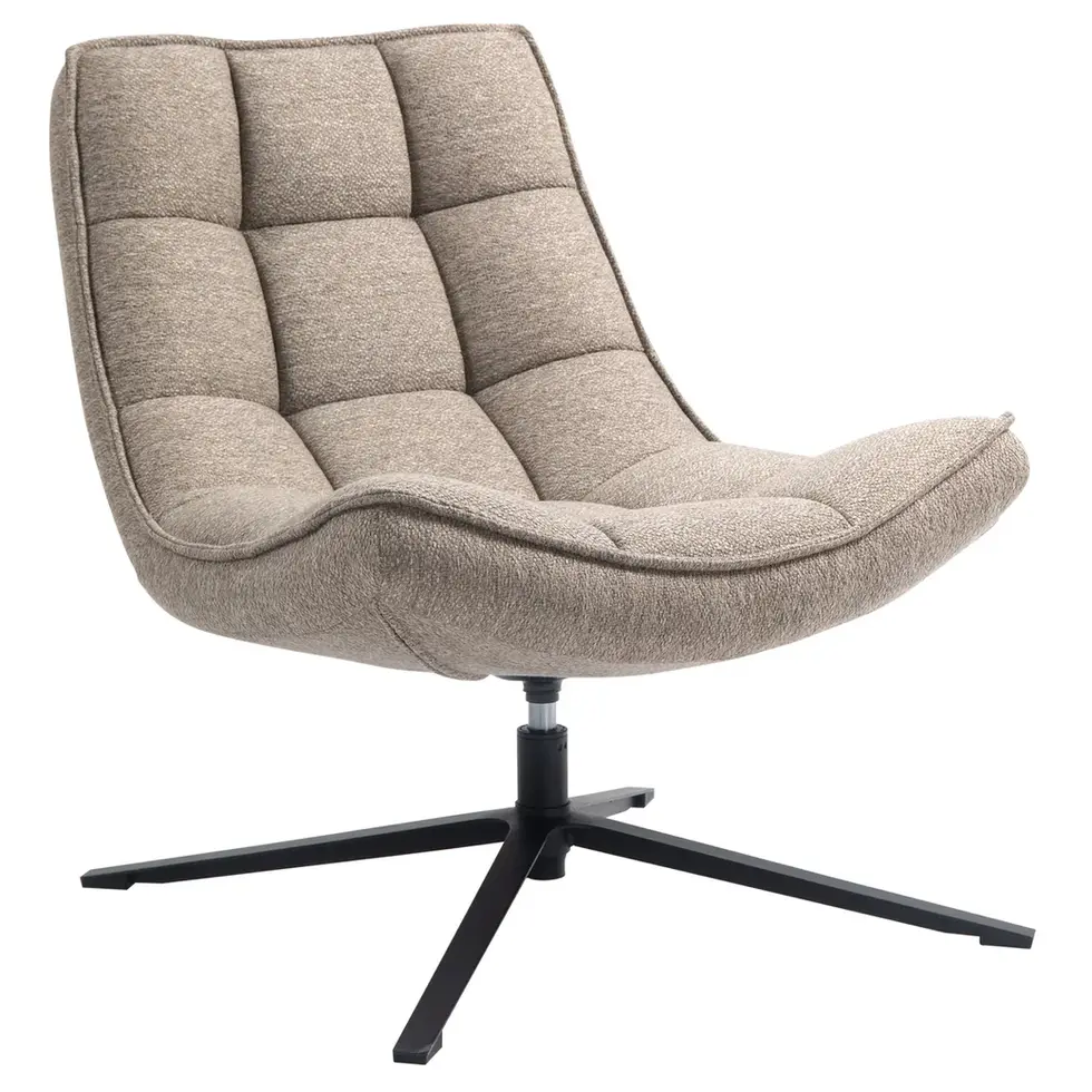 Ce fauteuil pivotant couleur sable allie modernité et confort. Avec son dossier matelassé et son piètement en métal noir, il apporte une touche d'élégance à votre intérieur tout en garantissant stabilité et bien-être. Parfait pour sublimer vos espaces de vie !
