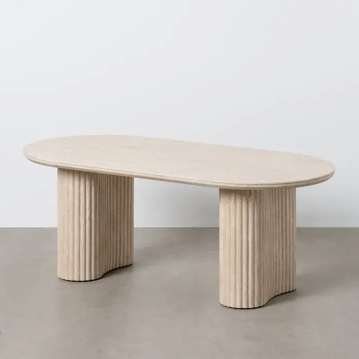 Cette table basse combine élégance et modernité avec son plateau en pierre frittée artificielle et ses pieds en MDF.