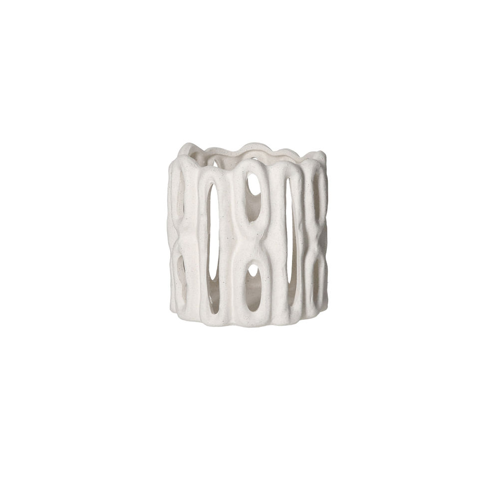 La collection Cadiz, composée de photophore en pierre (grès), se décline en blanc craie avec une finition sablée subtile, mais rugueuse. Elles sont disponibles en trois tailles différentes, ce qui les rend polyvalentes, car vous pouvez y placer aussi bien des bougies chauffe-plat que des bougies pilier pour une ambiance vraiment chaleureuse !