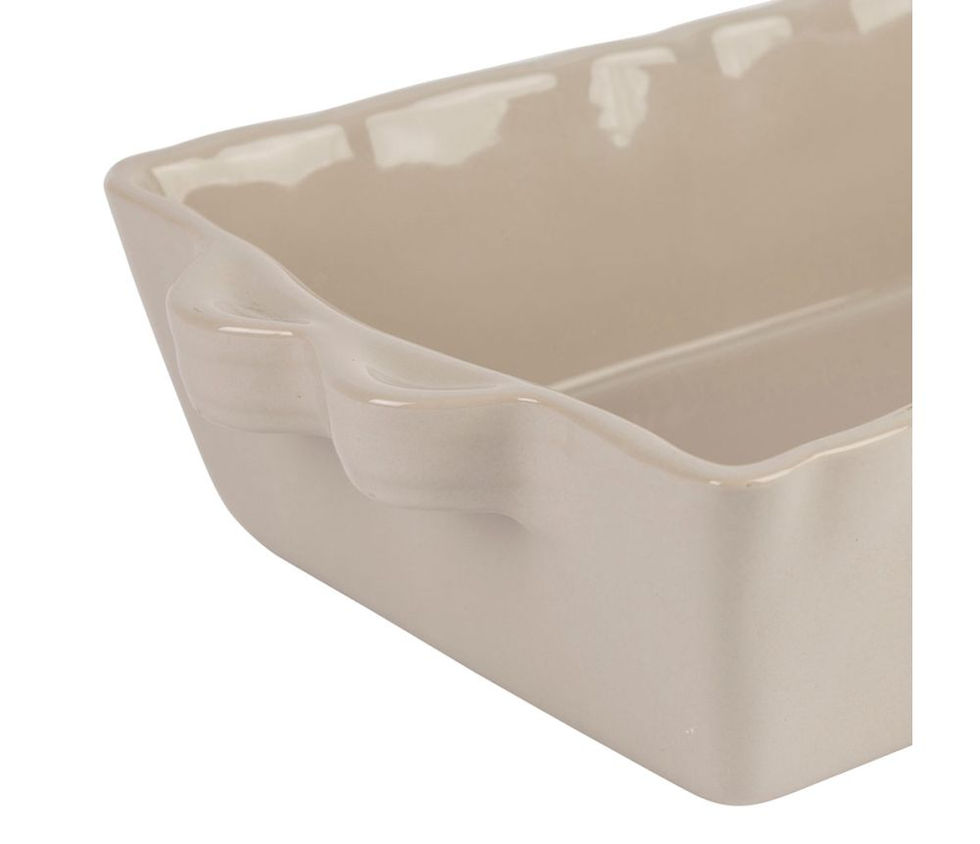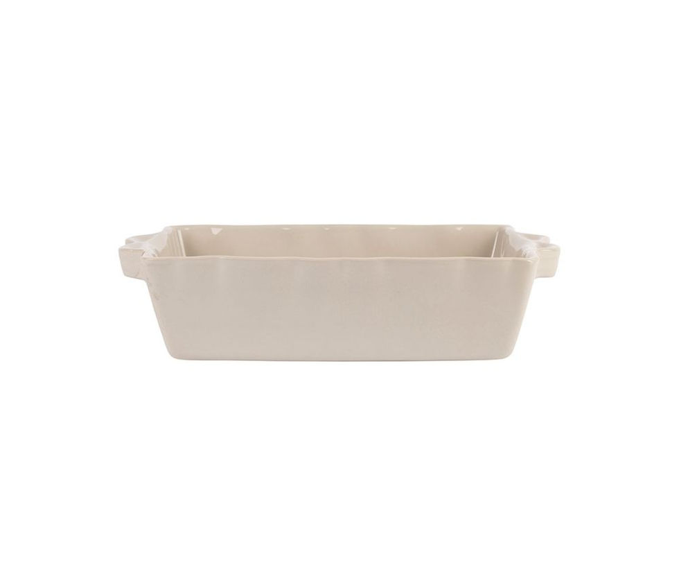 Ce plat à four en grès allie robustesse et élégance avec sa forme rectangulaire et ses bords ondulés. Sa finition lisse et brillante facilite le service, tandis que ses poignées intégrées offrent une prise en main pratique.